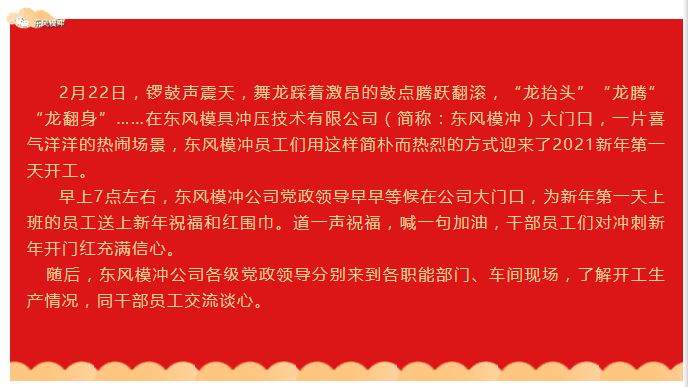 東風模沖公司員工喜迎開門紅,自信戰牛年
